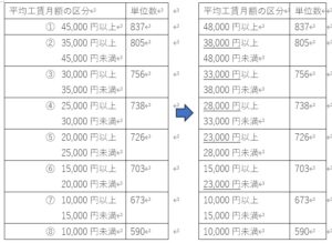 平均工賃月額が約6,000円増加しているので、その1/2程度(約3,000円)基準額を引き上げることが案として挙がっており、それを元に一例を作成すると、