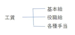 一般の企業と同じように、工賃は以下のように分類した方がわかりやすいです。