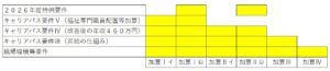 2025年度までは区分ごとに1つ以上(生産性向上の区分は2つ以上)の合計7つ以上の取り組みで要件をクリアしましたが、2026年度は合計8つ以上の取り組みが必要です。